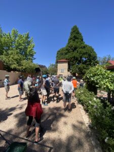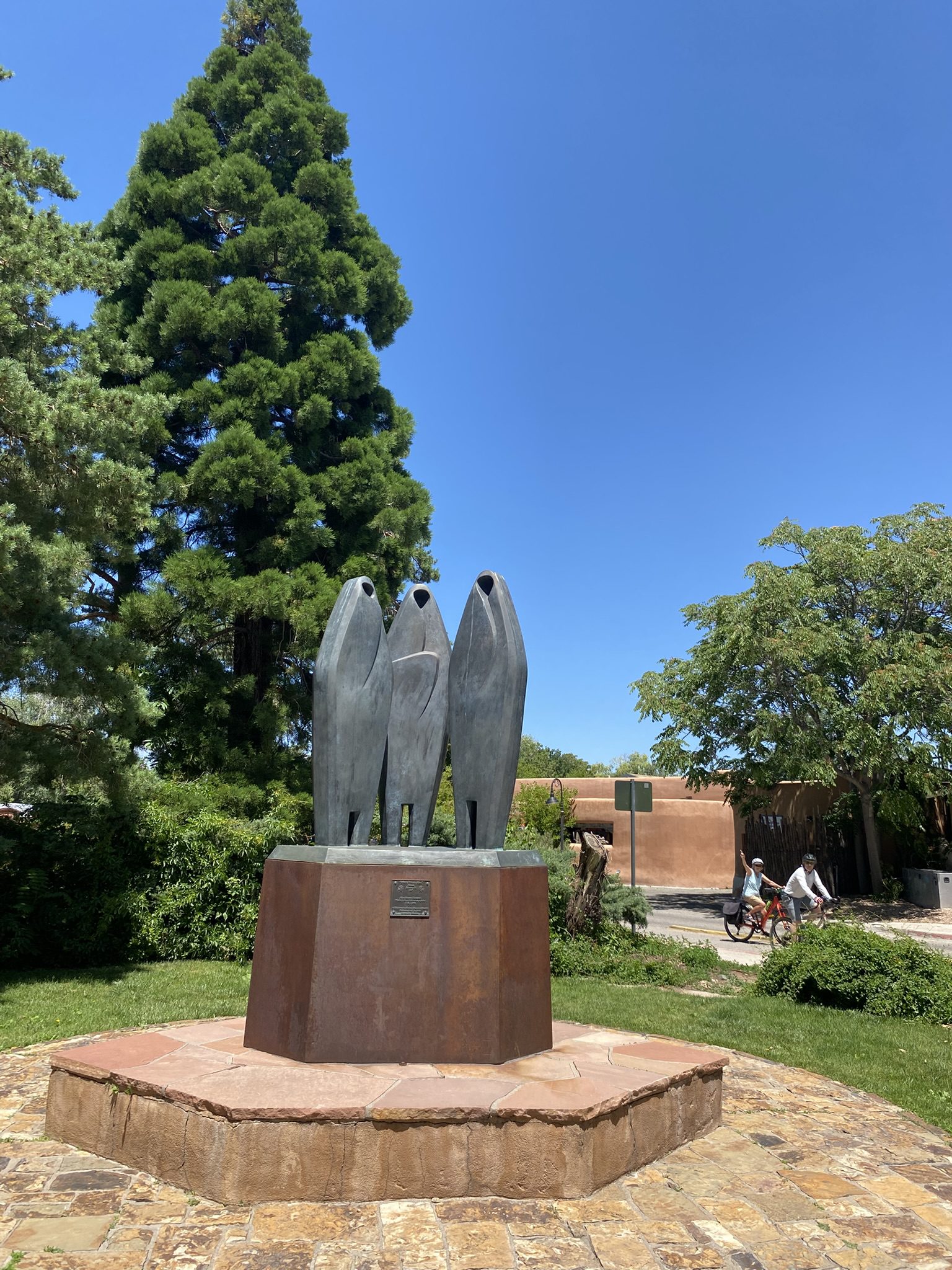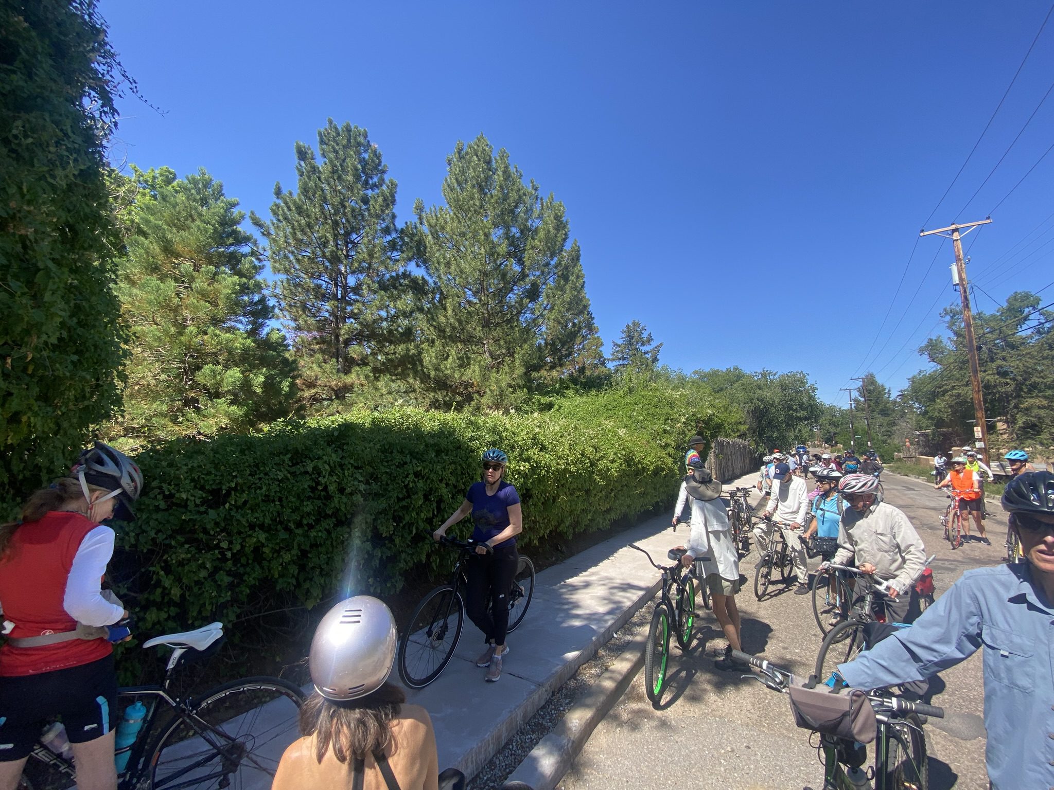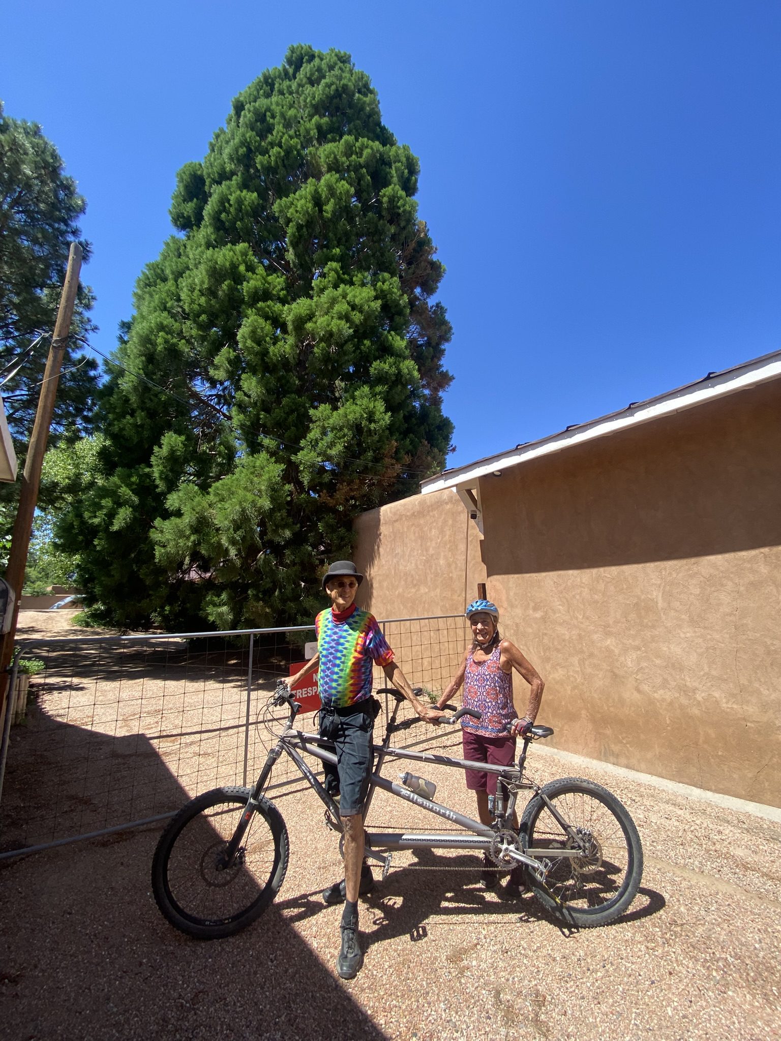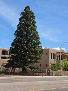 Over 45 riders joined the “Tour de Sequoia” on the morning of July 5, 2025 – one of the biggest “Commuity Cruises” ever! Special thanks to volunteers Maggie Odell, Yates Coulter, and Susan Coulter, who came up with the idea, researched and mapped the trees, helped determine the cycling route between them, and helped manage the considerable crowd of curious cyclists as we meandered around Santa Fe’s East Side, where these trees were planted back in the 1960s or so. All in all we visited 23 trees on this nearly three-hour tour. Four more that we know of were beyond the limits of this easy cruise and can be seen on the back of the pdf map linked below.
